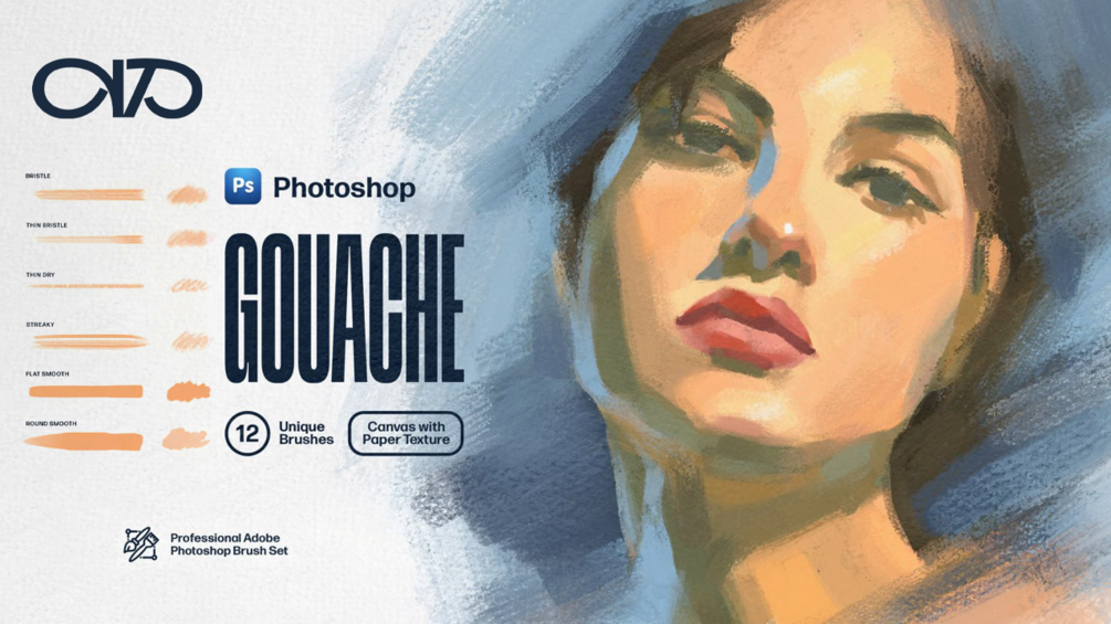 You will get 12 Unique Gouache Brushes & Canvas with paper texture